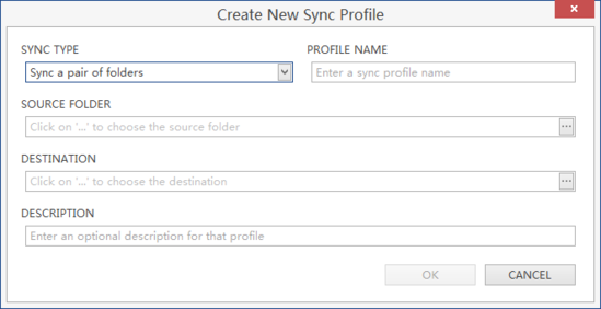 在使用该实用程序时,该实用程序基本上可以满足其简单本质,因为所有内容都可以在一个窗口中进行管理。单击“新建…”按钮后,将提供用于选择同步类型,配置文件名称,描述和源文件夹位置的选项。