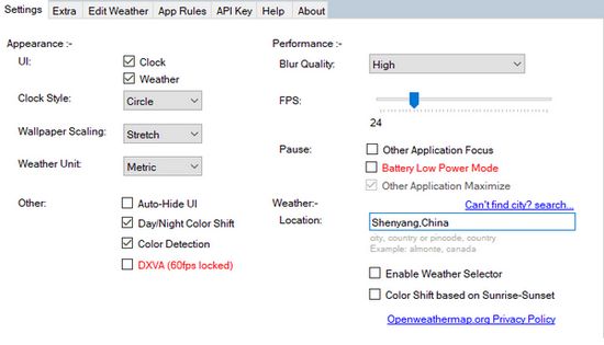 编辑天气效果rePaper效果的显示是需要占用一定资源的,如果影响了某些大型软件的运行,可以在APP Rules中添加这些程序,让rePaper在这些程序运行时自动暂停。