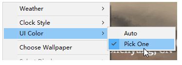 小雪天气效果由于壁纸多种多样,颜色也比较复杂,可能会导致时钟、天气等颜色不显眼,这时可以通过右键菜单的UI Color指定颜色。