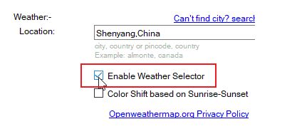 想让它显示实际天气,需要在Settings中设置位置,需要英文格式的地名加国家,比如Shenyang,China。