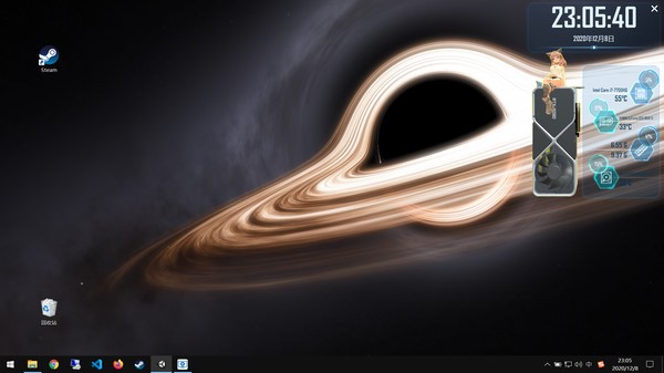 1、妹子荡着小腿在显卡上帮你监控 PC,随着 CPU 温度升高妹子会换装。