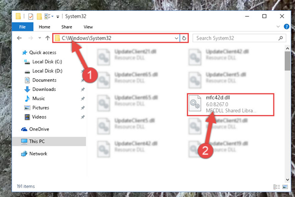 请解压“32位系统”文件夹内的 mfc42d.dll文件到“ X:WindowsSysWOW64” (X代表您系统所在目录盘符,如:C:WindowsSysWOW64 )。