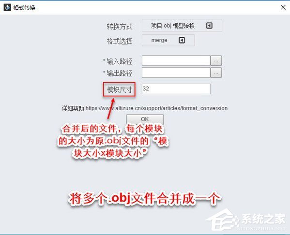 请注意:由于电脑内存有限,不是所有层次的模型都可以合并成一个OBJ。我们不建议使用模块尺寸超过64的设定。另外,为了均匀拆分模型文件,不论您的模型文件有几个level,模块尺寸都一般设置为2的幂数。