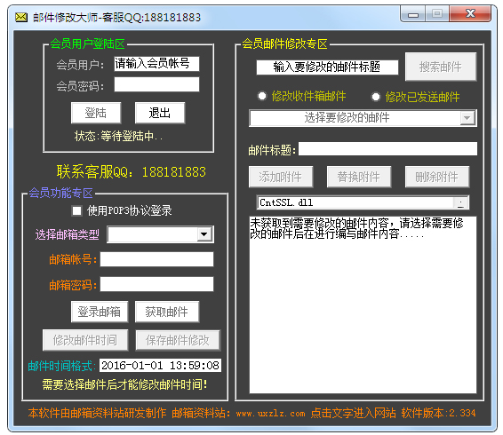 邮件修改大师采用直观方式对已发出或收到的邮件内容修改,直接导入登录网页,取得相关值,然后进行已发出或收到的邮件内容修改,已发出或收到的邮件内容修改技术独有,几乎能已发出或收到的邮件内容修改国内各种网页登录邮箱,包括网站管理员登录邮箱、论坛登录邮箱、校内邮箱登录邮箱,企业公司内部邮箱等等。目前主要支持国内邮箱,国外邮箱目前主要支持Gmail邮箱及Hotmail邮箱。其它国外主流邮箱将在日后陆续完善。
