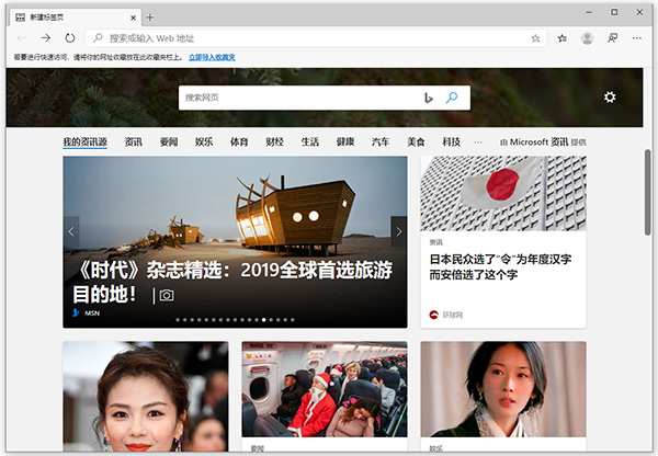 Win10浏览器Edge是基于开源Chromium渲染引擎而开发的,专门为Win10系统的用户服务,具备了浏览器的各种基础的功能,默认主页采用的是bing的搜索引擎,同时会显示最近访问的网站列表;另外设置按纽支持网页缩放,下载管理,历史记录,扩展,收藏夹等等,浏览使用超快速,提供安全、高效的网页浏览服务。