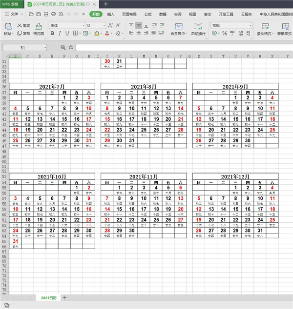 1、马上即将迎来2021年了,很多小伙伴可能都想知道新的一年的节日和周六日,方便自己在全新的一年里假期情况如何,有什么方便出去游玩的时候,本次小编分享的就是2021年日历表电子版,用户可以直接下载这个文件,然后使用文档打开,可以使用打印机直接打印出来,并且内置了农历还可以提供重大事件的标记,周末放假还使用了红色进行标注和标记,让用户可以轻松的看到自己想看的假期。