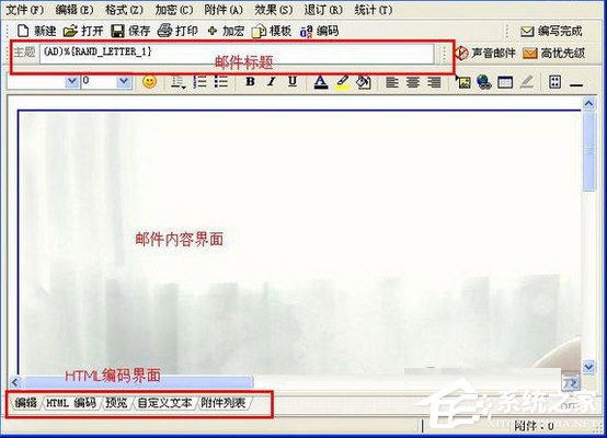 6、按照上面的操作可以看到邮件标题、内容、以及编码界面。一般为了增加邮件编码的发垃圾系统的成功率,我们基本运用隐藏代码。