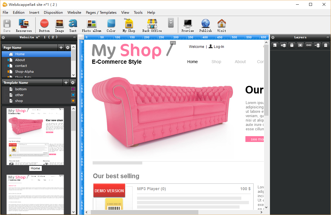 它有一个可定制的清晰界面和许多有用的工具,Web Acappella4是一个完美的完全自由的网站创建和发布软件。拥有超过150.000的用户,Web Acappella4是满足所有用户的需求,并允许在一个非常简单而快速的方法创建网站。此外,Web Acappella兼容于Mac和Windows,不需要任何专业技术知识。