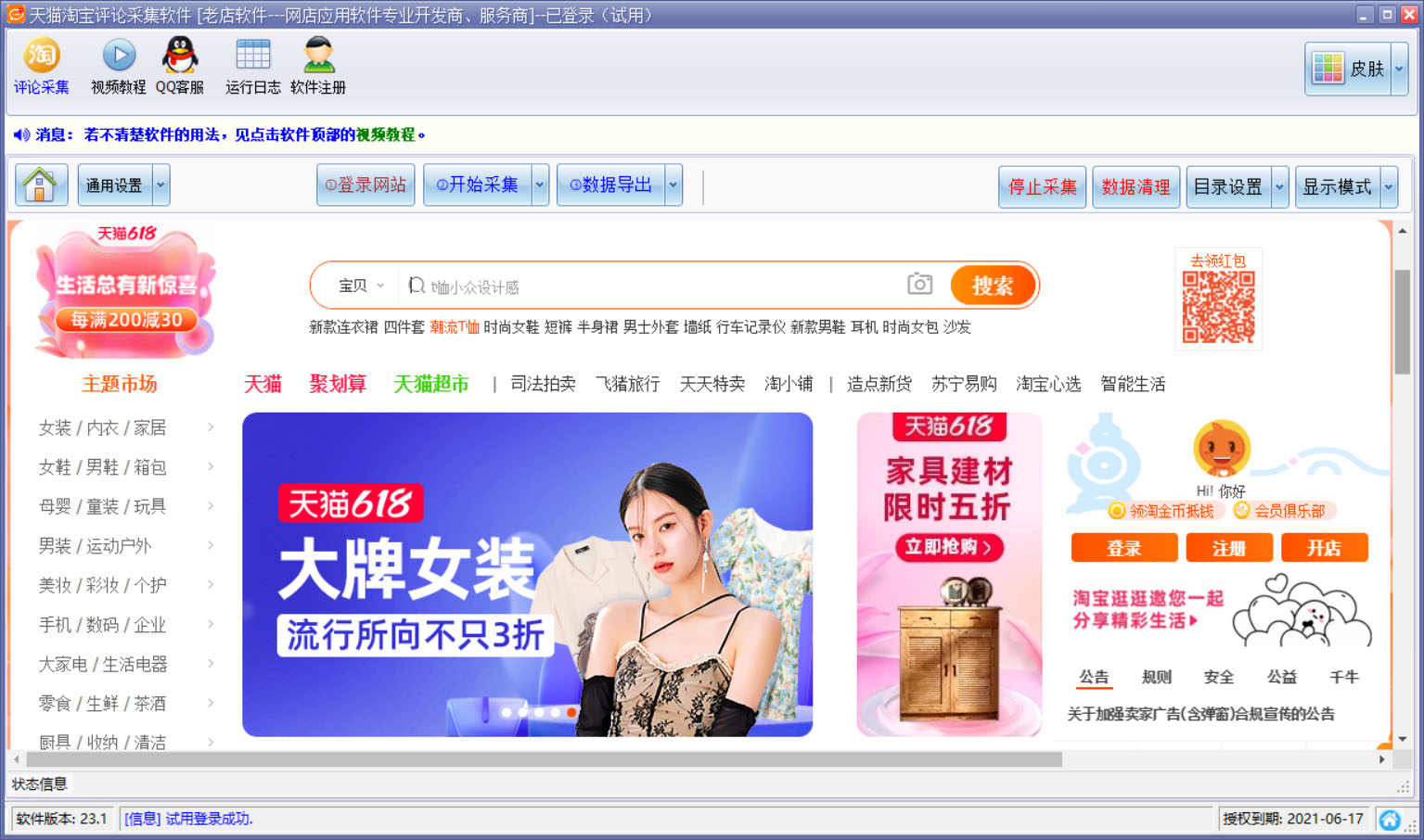 1、天猫淘宝评论采集分析软件,是一款功能强大的评价采集工具。包括:“产品Id、sku信息、用户昵称、用户级别、评论时间、算法分类、评论内容、追评内容、追评时间、图片列表、视频URL、产品标题、产品Url、店铺名、采集时间”。此软件可以帮助店铺运营人员快速找到爆款,跟踪分析市场热度。从而制定优化自己的营销策略