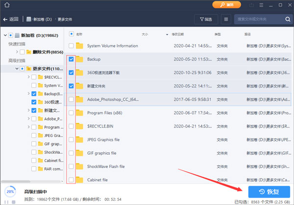 在扫描后指定恢复文件类型,让结果更加精确。