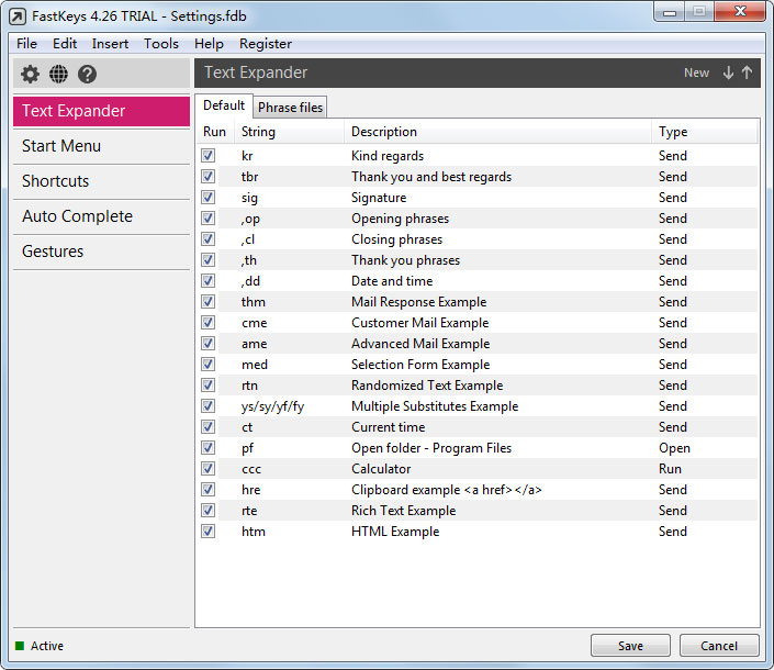 FastKeys免费版是一款功能强大的一体化Windows自动化软件,能够自动化包括文件扩展器、开始菜单、手势、和用户命令等,软件能够减少打字时间,输入选择字段,自动执行计算机上任何操作。