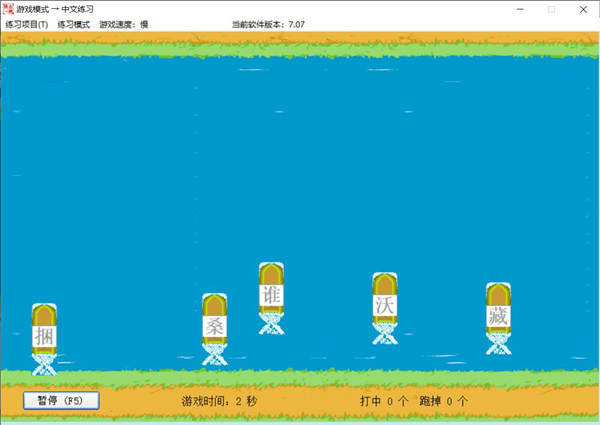 5、单纯的练习打字很枯燥,用户们可以换一种更能激发速度与提高注意力的方式练习,那就是打字游戏~ 中文字的游戏要用输入法把字打出来才能引爆炸弹哦。