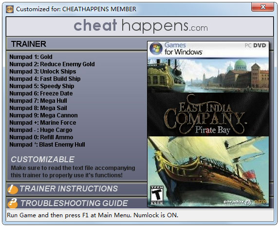 东印度公司修改器 功能特点: