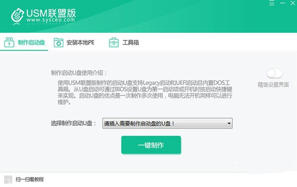 3、可以一键快速帮助用户快速的为U盘制作出一个PE系统。