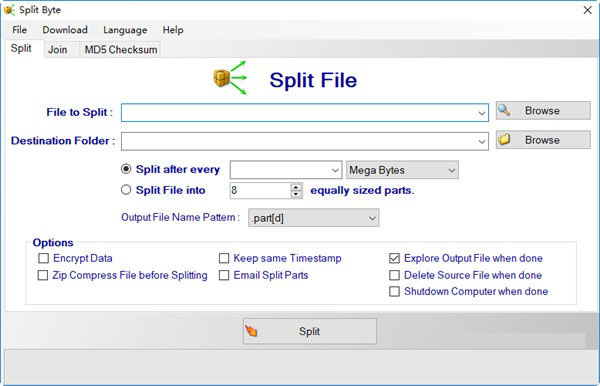 Split Byte官方版可以将大文件分割成较小的部分,然后加入它们。
