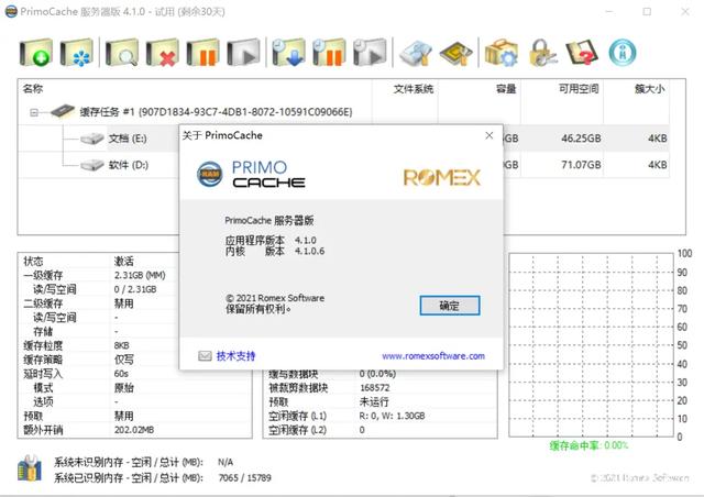 7、打开primocache,试用期就一直是30天了,可以免费使用。