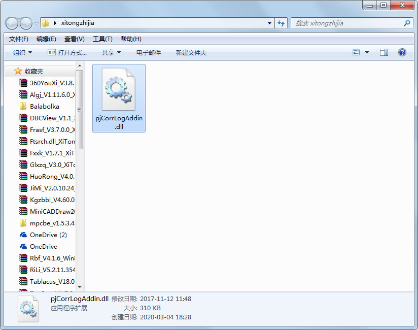 2、复制文件“pjCorrLogAddin.dll”到系统目录下;