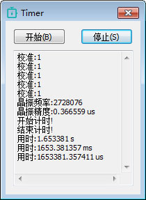 点击停止后将会计算从上一次点击开始所用的时间,如果没有点击开始……则时间近似为窗口显示的时间 + 校准所用时间(500ms)。