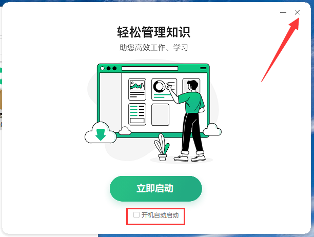 6、取消勾选“开机自动启动”,点击“X“退出安装向导。