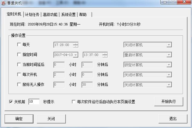吾爱关机工具是一款强大的自动开机/关机软件,它可设定多种定时关机方式,例如指定时间关机,鼠标无操作后关机、当前时间延后关机等,是一款功能强大的电脑定时关机软件,关机王定时关机软件具有进程保护功能,防止程序被恶意结束。