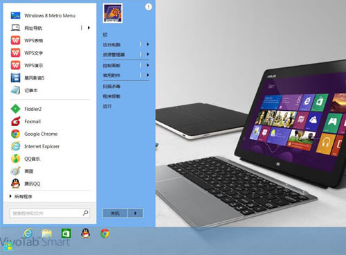 包含Win8系统内安装所有程序列表、常用程序列表以及固定菜单列表,用户可自行管理所有的列表,同时添加返回Metro界面的入口。
