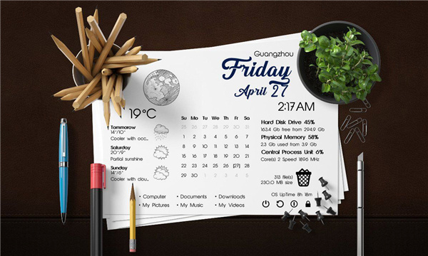 4、个性化您的桌面,并通过小部件使桌面活跃起来。