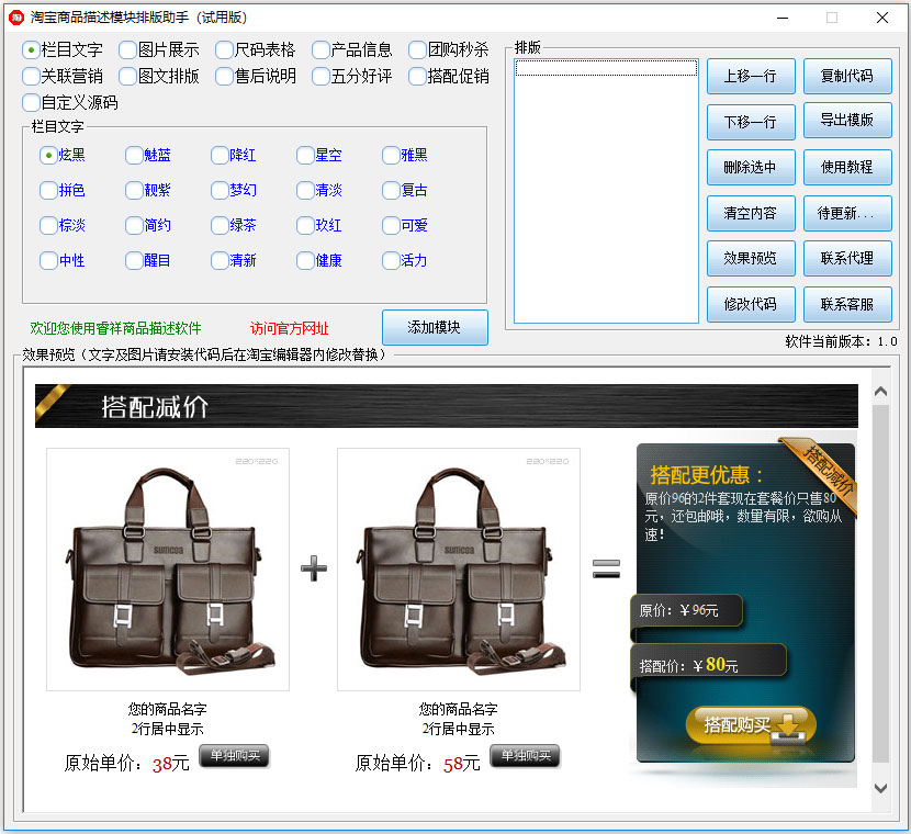 淘宝商品描述模块排版助手 V1.0 绿色试用版