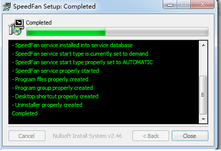 4、peedfan正在安装中,您需要耐心等待软件安装完成,安装完成后点击【Close】退出软件安装。