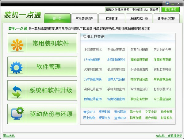 装机一点通是一款系统增强程序,集成常用软件推荐、下载、安装、升级、卸载等功能,同时提供系统漏洞修复功能。