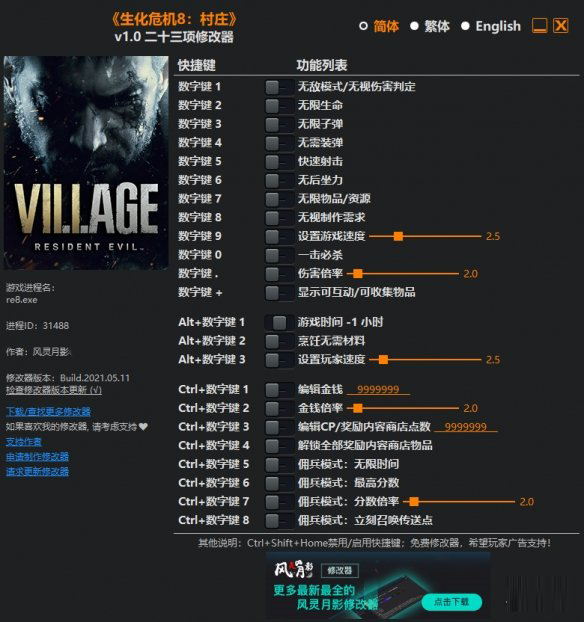 生化危机8二十三项修改器 V1.0 风灵月影版