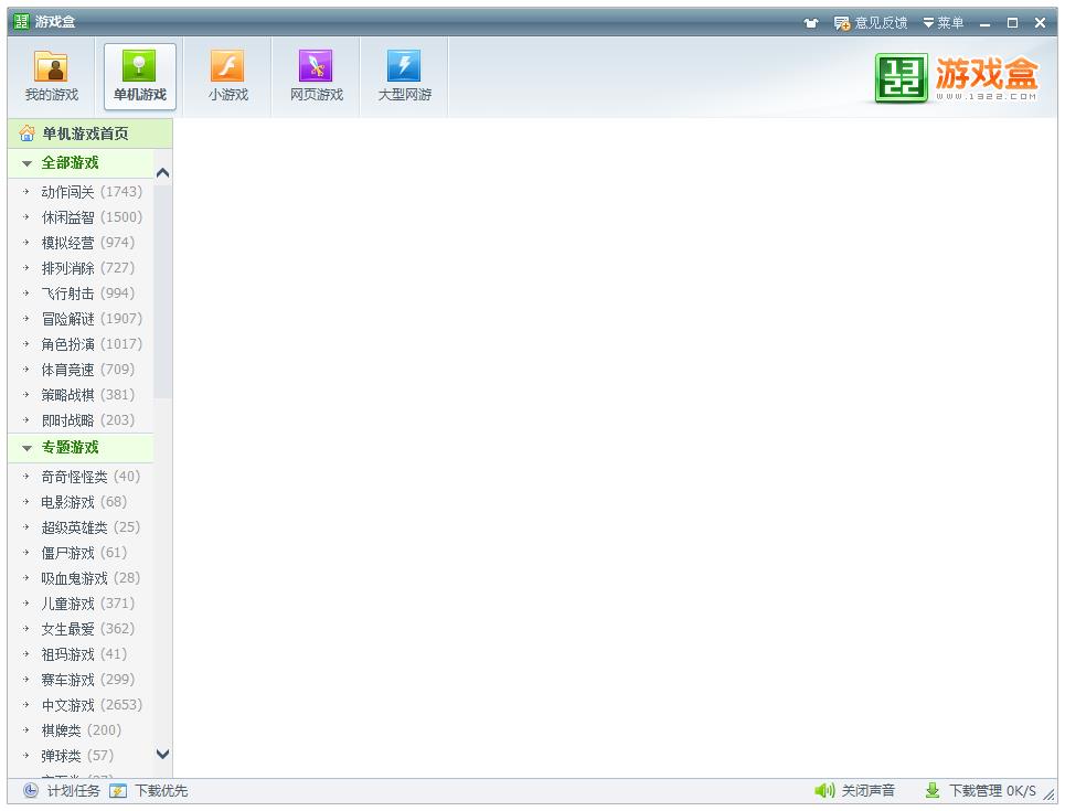 1322游戏盒是一款汇聚数万款热门在线小游戏的游戏大全桌面管理器,它汇聚了网络界最全的单机游戏,网页和网络等数千款绿色经典游戏。每日更新最新的好玩游戏,让您在电脑桌面上每天也都可以享受到丰富多彩的游戏运行速度超快的游戏世界。