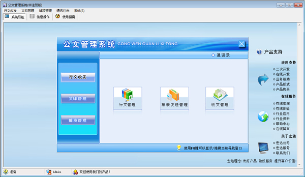 宏达公文管理系统是一套通过行文收发,文印管理和辅项管理等功能相结合的综合运用的公文管理系统。