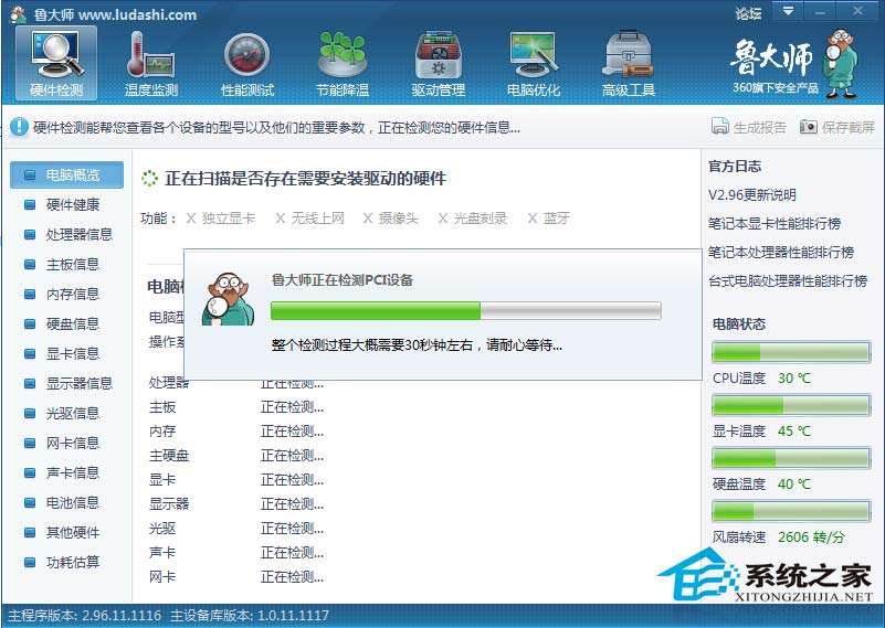 鲁大师2011是一个专业、简单易操作的硬件检测软件,准确率超高,同时向你提供中文厂商的信息,让你对于爱机情况清清楚楚,避免被JS所骗,适用于笔记本电脑、品牌台式机、DIY兼容机,此外还能帮你快速升级系统补丁,检测安全漏洞,一键优化清理,让你的系统更稳定,快速。