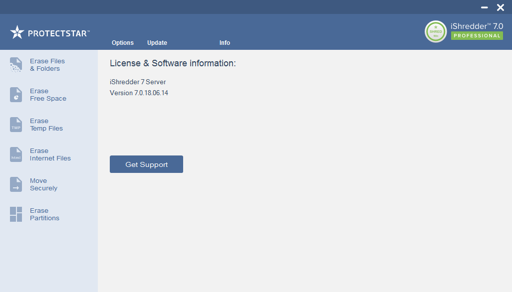 iShredder是由PROTECTSTAR推出的一款专业的数据清理软件,这款软件可以完全删除硬盘或外部数据存储设备中的数据,从而确保个人数据,银行数据和密码等机密信息不会落入坏人之手,其任何恢复软件都无法恢复,可完美防止数据恢复重建。另外,此软件能够有效地删除用户数据,甚至是政府机构,而且还可以擦除所有现有数据,包括机密,秘密和绝密安全级别数据,例如:符合德国BSI-VS-2011(TL-03423)标准,美国陆军AR380-19,国防部5220.22-M E.和CSEC ITSG-06等,非常实用。