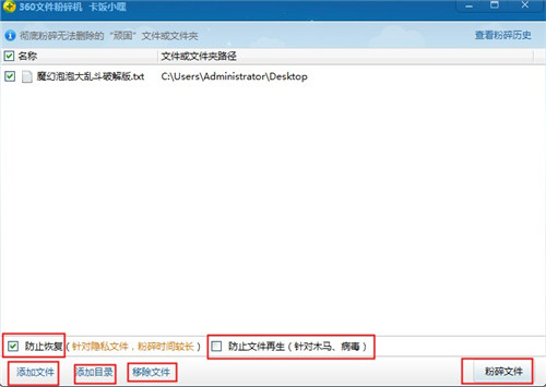 1、可完全粉碎恶意文件!被粉碎的文件不可恢复,需要慎重操作。您可以点击左下方的添加文件、文件夹按钮或直接拖拽想要删除的文件或文件夹到本窗口。