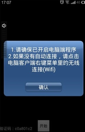 手机打开之后,如果连接上wifi网络之后。下方有一个wifi连接的代码输入到电脑端。点击开始即可。