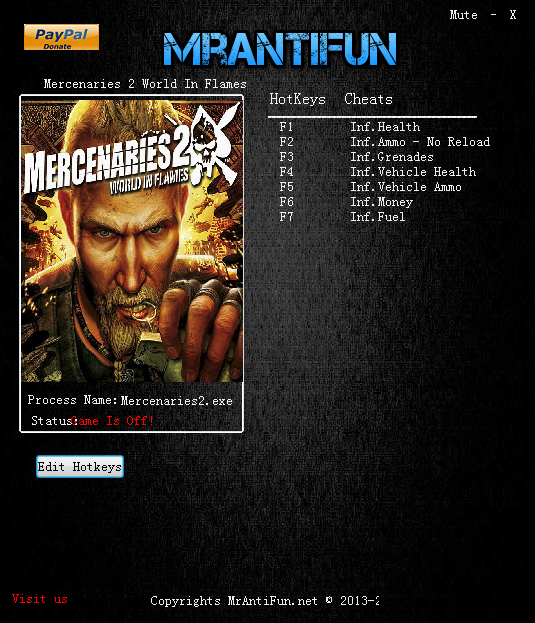 雇佣兵2战火世界八项修改器 V3.0 绿色版