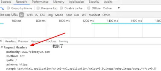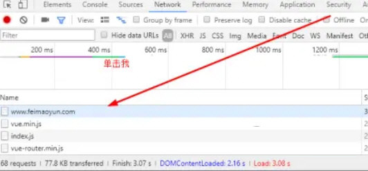 选中上面的Network然后找到下面的www.feimaoyun.com
