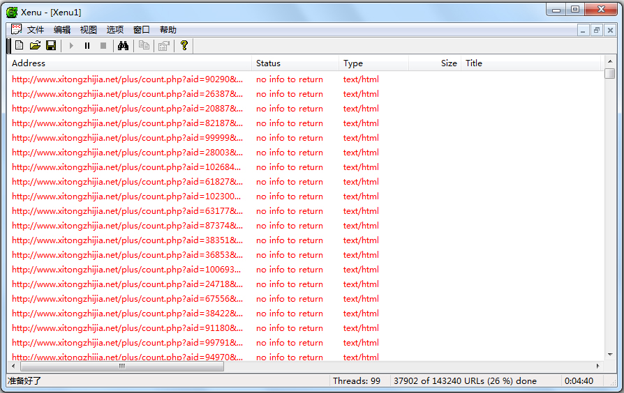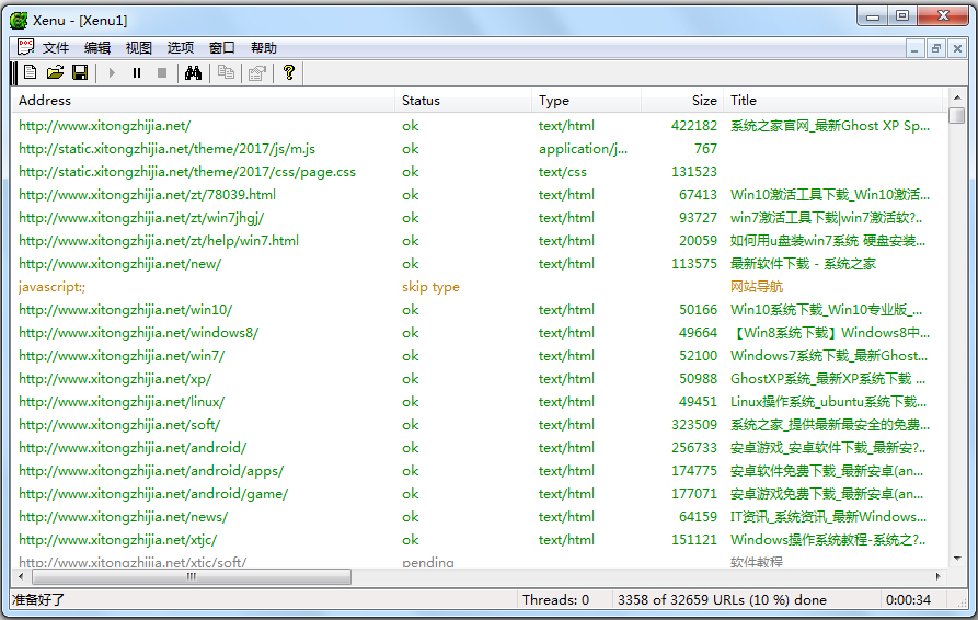 只要输入指定的域名,Xenu就可以像蜘蛛一样爬出所有的链接并一一检查是否404死链。Xenu检查的结果以URL地址、返回状态、类型、大小、标题、日期格式显示,非常方便查看哪些链接有问题。