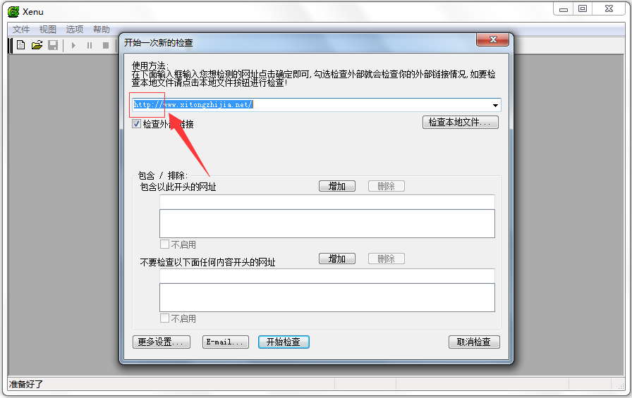 大家通过图片可以看到,赵彦刚强调了一定要加http://,不然后果你懂的。下面的“需要检查的网址”和“不要检查的网址”不用说大家也能明白什么意思,我就不废话了,直接点击"开始检查"就会开始进行检测;