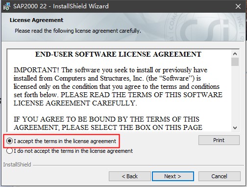 2、双击文件“SAP2000v2200Setup.exe”安装软件,接受条款;