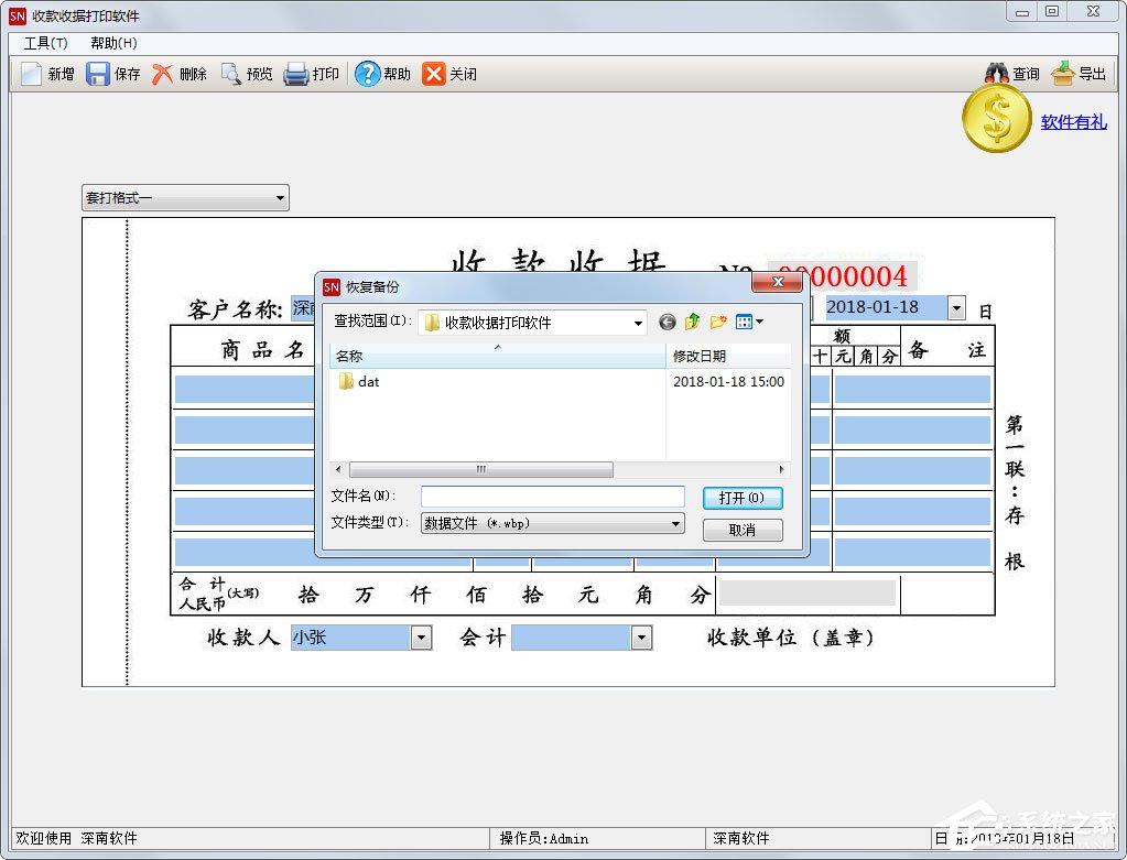 2、当需要恢复以前备份的数据时,点击工具菜单的恢复备份,打开恢复备份界面,选择备份的数据文件,点击打开,即可恢复以前备份的数据。