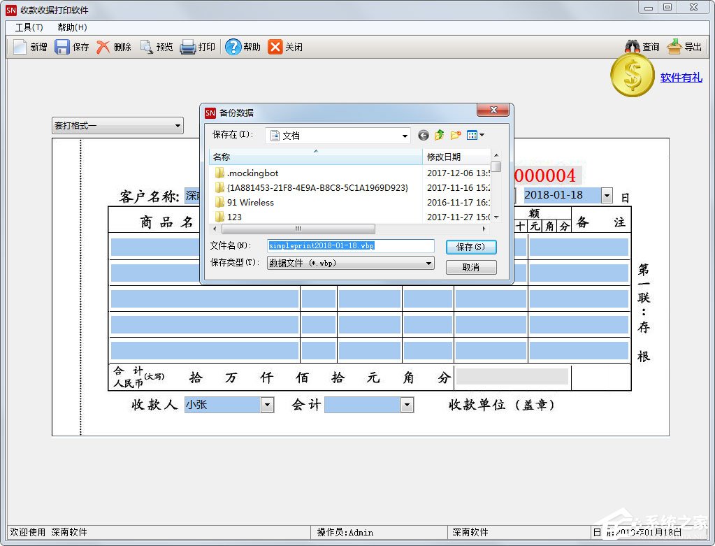 1、点击工具菜单的备份数据,打开备份数据界面,软件会自动生成带备份日期的备份数据文件名,选择好保存路径,点击保存,即可完成数据备份;