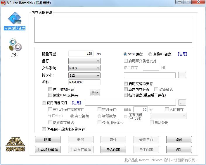 VSuite Ramdisk是Romex Software开发的一款可以利用内存虚拟一个完全等效的物理硬盘。可以极大的提高读写文件的速度,并减少实际硬盘的访问,从而延长硬盘寿命。它还可以识别操作系统识别不到的内存,通过虚拟成硬盘的方式加以充分利用。和其它同类软件相比,这款软件具有更高的完全随机访问速度,以及稳定的性能。并且软件界面友好,操作简单方便。