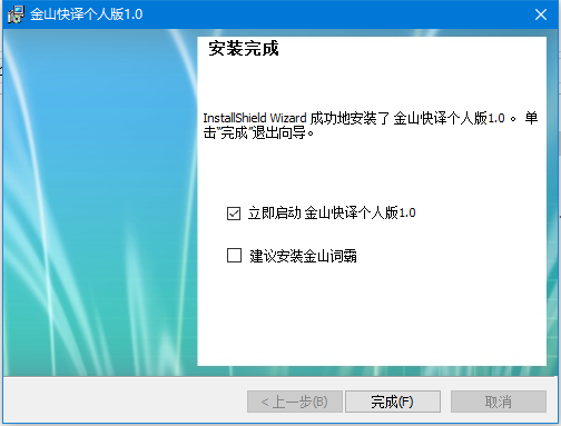 6、金山快译安装完成,点击“完成”退出安装界面。