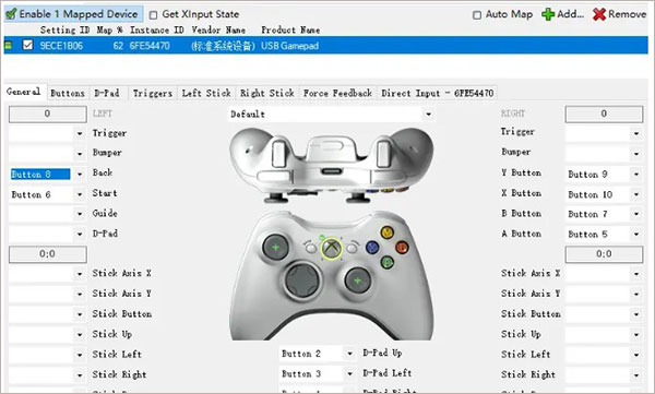 Bongo Cat Mver作者已经为软件加入了XInput支持,就可以使用x360ce来伪装成一个Xbox手柄,既快速,还方便。打开x360ce,点击“Add…”进行添加手柄:
