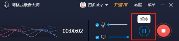 开始录制后,点击【暂停按钮】会暂停录音。