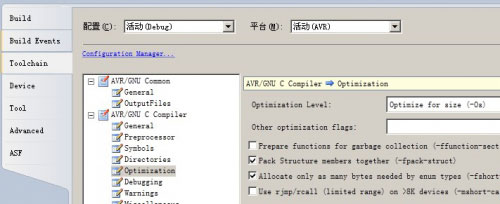 这里以GCC编译C语言编译一个8位的AVR为例,AVR Studio 6已经集成了AVR Toolchain,不需要再安装WinAVR,也不需要再安装AVR toolchain。编译一个AVR时,需要做以下几件事,以AT90CAN128为例: