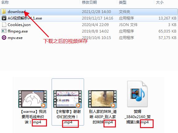 下载之后的文件,会直接保存在软件文件夹中的“download”目录下,而且全都是MP4格式,支持任意播放器播放。