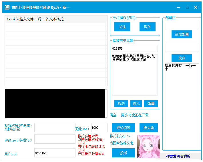 5、批量评论点赞(慎用吧 填入视频AV号 和 rpid 频繁操作可能有被封风险 [两个都只需要纯数字 不需要带av之类的])。
